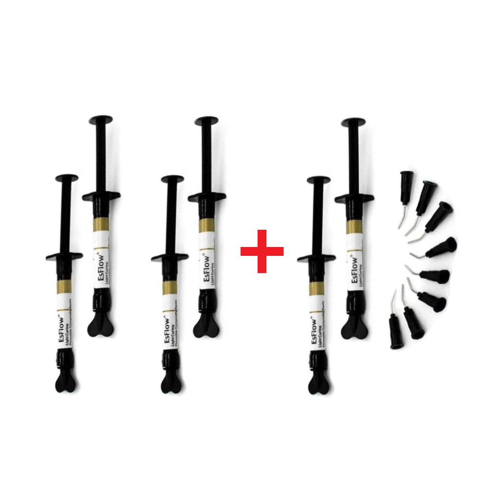 EsFlow je svjetlom polimerizirajući nano hibridni tekući kompozitni materijal za ispune. Koristi različite veličine punila i monomer uretan metakrilata visoke molekularne težine. Stoga EsFlow ima vrhunsku tlačnu čvrstoću i niže skupljanje pri polimerizaciji. Prikladan je za klase III – V i duboke klase I.